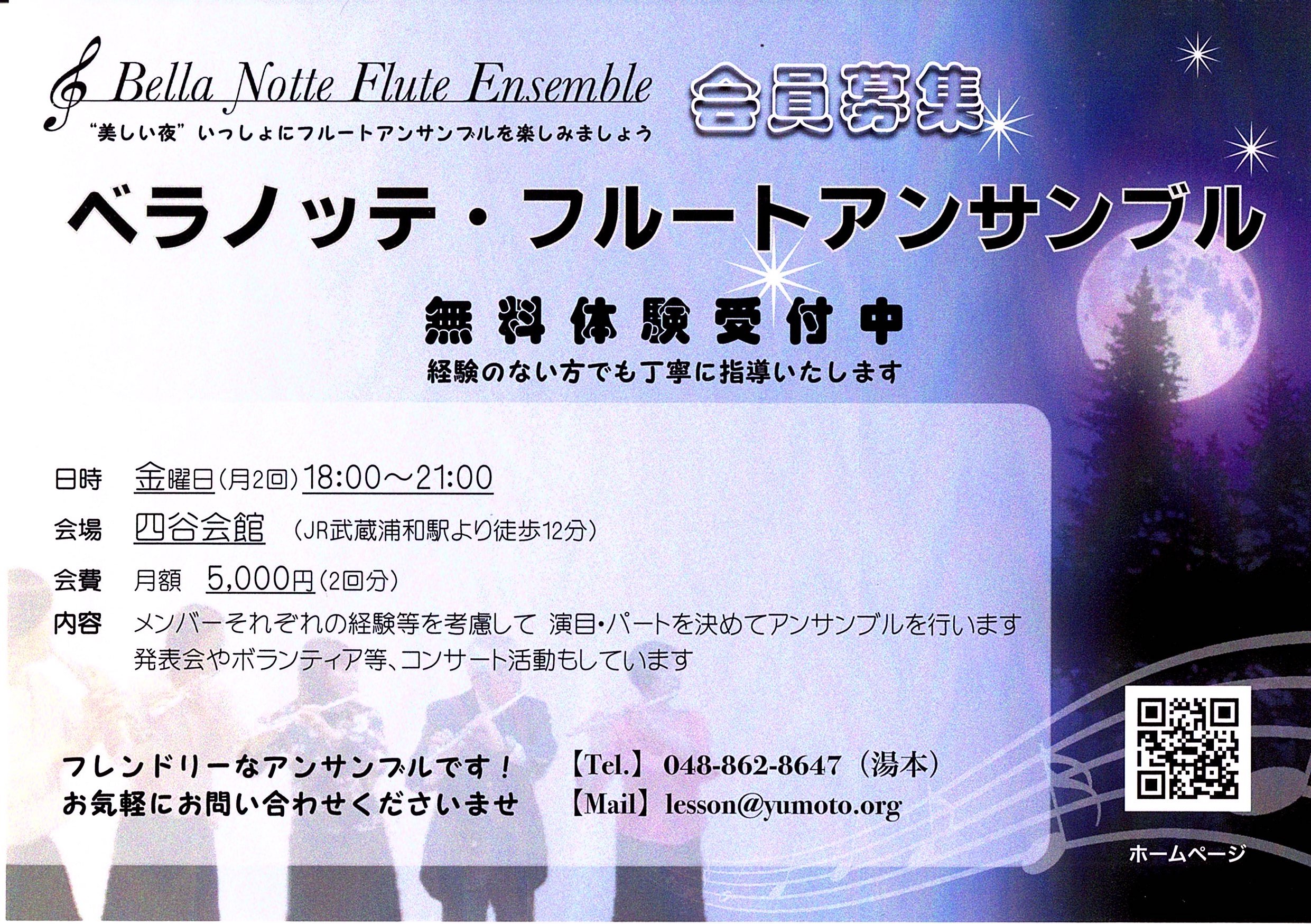 ベラノッテ・フルートアンサンブル会員募集→ チラシ